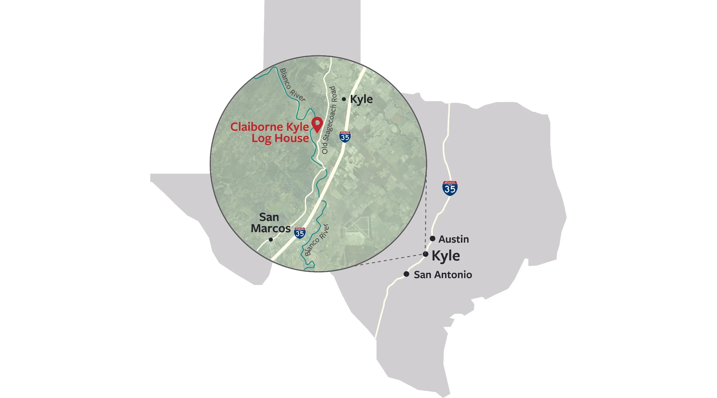 Around 1850, Claiborne Kyle built a log home on his Hays County property situated along the Austin-San Antonio stagecoach route. Remarkably, the house remains in its original location today, an increasingly rare feat for historic log structures.